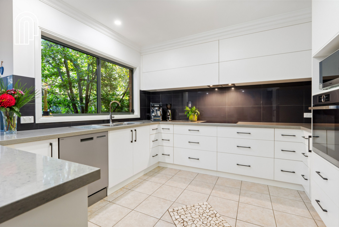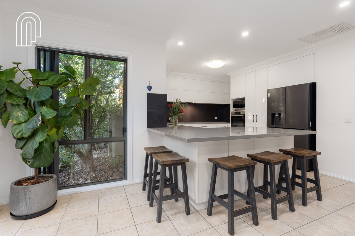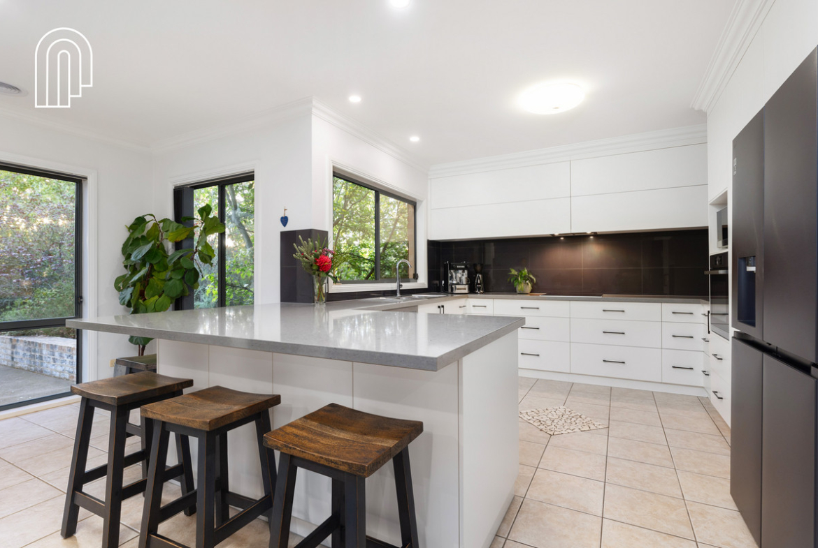 The heart of the home is a light-filled and functional kitchen, featuring stone benchtops, sleek cabinetry, and quality European appliances. Whether you’re cooking for the family or hosting a gathering, this space offers everything you need with style and practicality in mind.