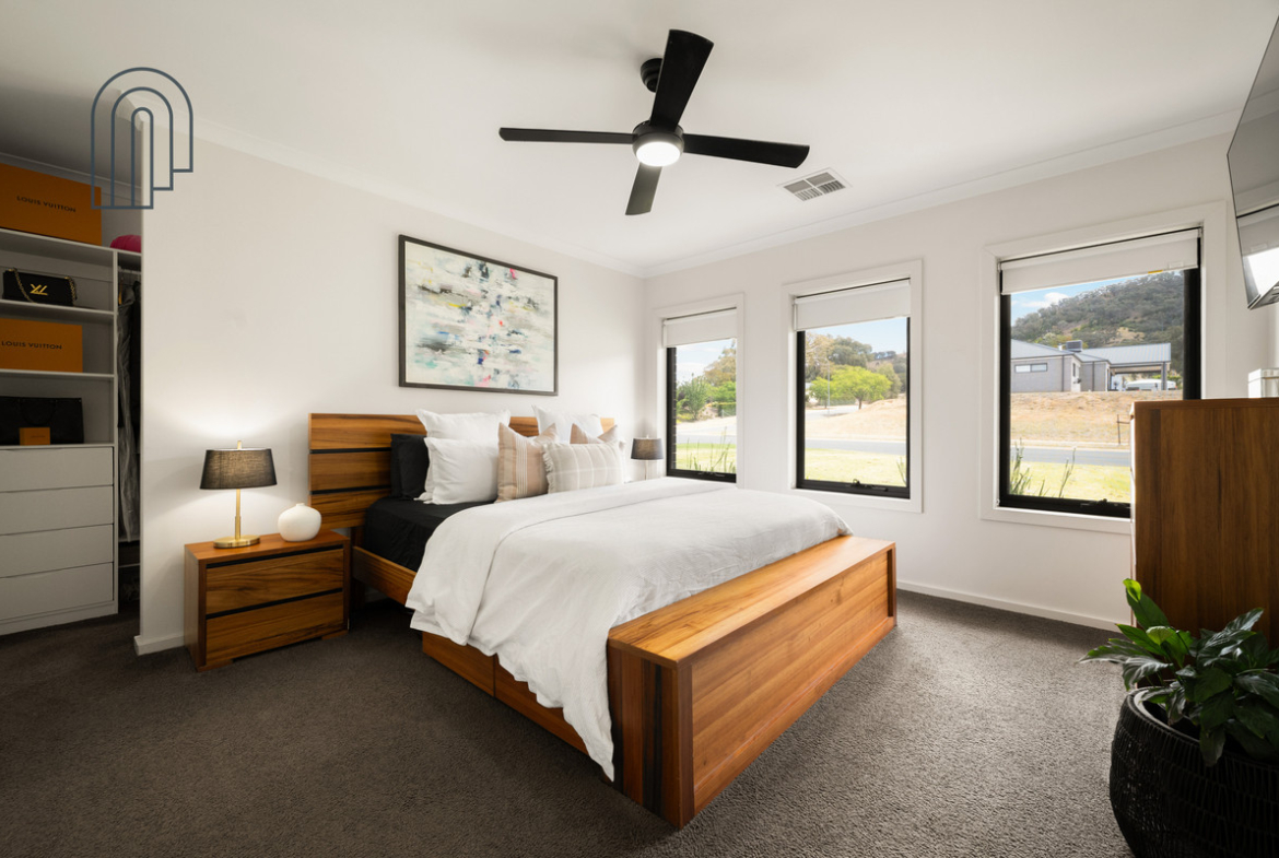 The residence offers four well-appointed bedrooms, including a master suite with double shower heads, his-and-hers basins, and a spacious walk-in robe. The remaining three bedrooms are fitted with built-in robes.