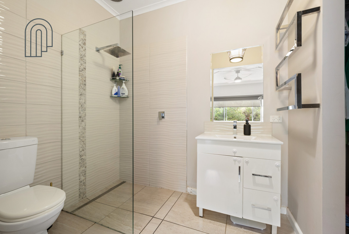 The home comprises four bedrooms, with the main bedroom featuring a walk-in robe and private ensuite. The remaining three bedrooms are all fitted with built-in robes, providing practical storage for the growing family.